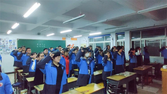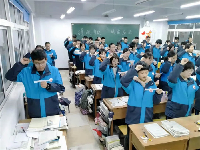 班级百日宣誓环节,同学们激情昂扬,誓言声声催人奋进,激荡校园。在握拳宣誓中,高三学子发出了心中最强音!同学们跟着班旗的指引,点燃梦想,激情满满,立志创奇迹,一起向未来!
