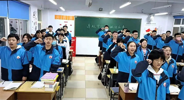 “自信陪伴梦想一起飞翔,让我们挺直年轻的脊梁,让我们用最好的成绩去摘得2022属于我们的胜利。”