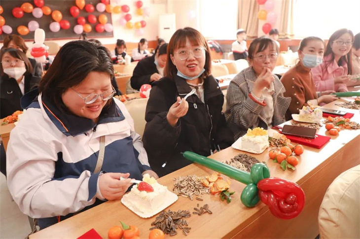 为了让女教师们感受到节日的快乐和学校的温暖,学校为她们送上了一份节日定制蛋糕。甜美的蛋糕,不仅暖化了老师们的疲惫,也使他们真切的感受到了学校的关怀和温暖。