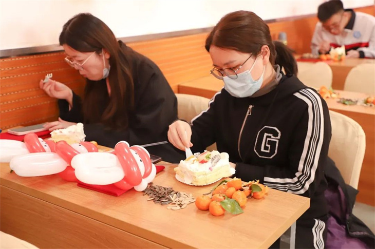 女教职工吃蛋糕