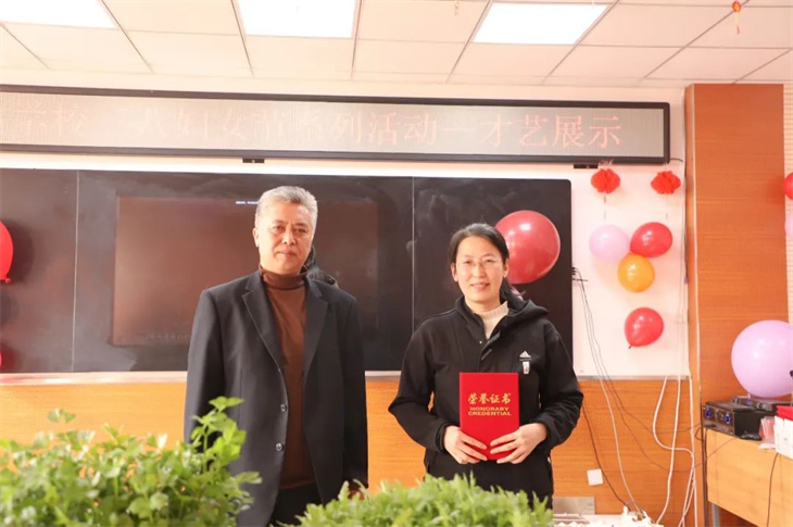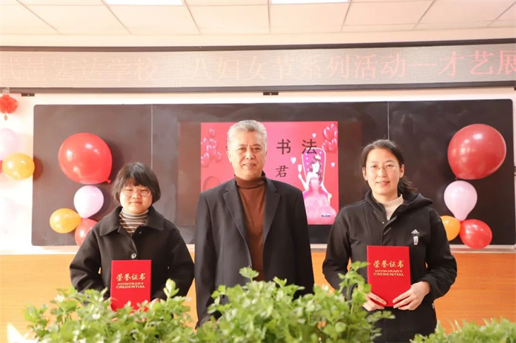 活动最后,校领导为获奖老师颁奖,学生代表也为女老师们献上了朗诵。