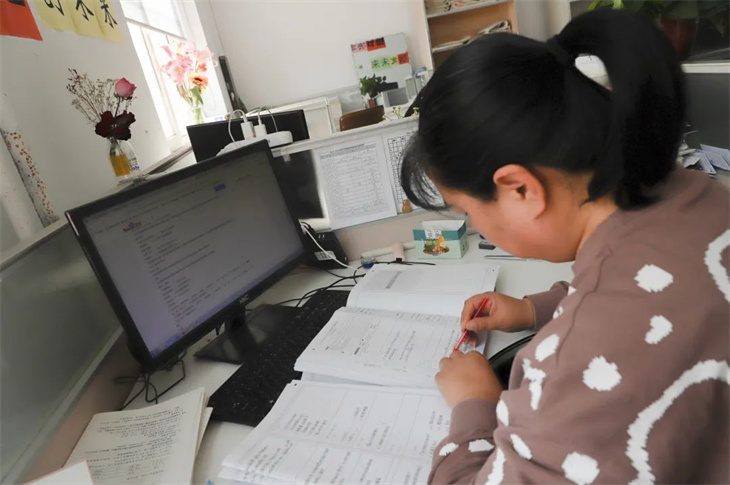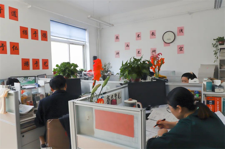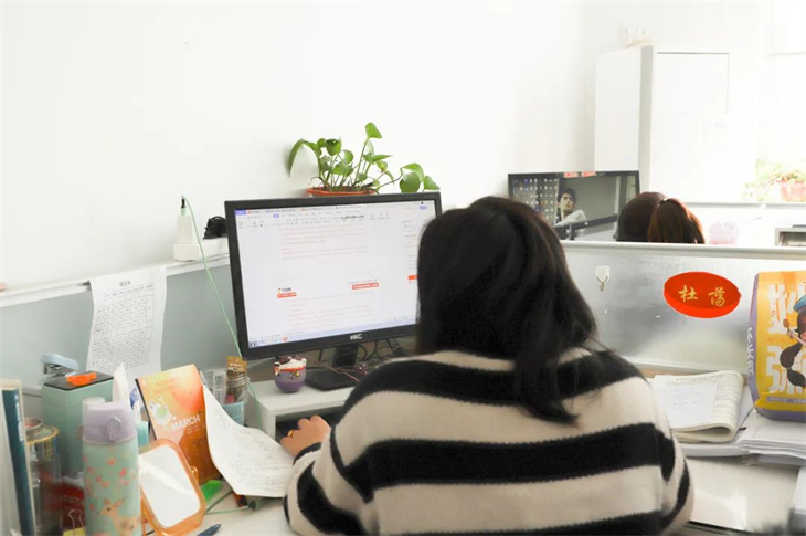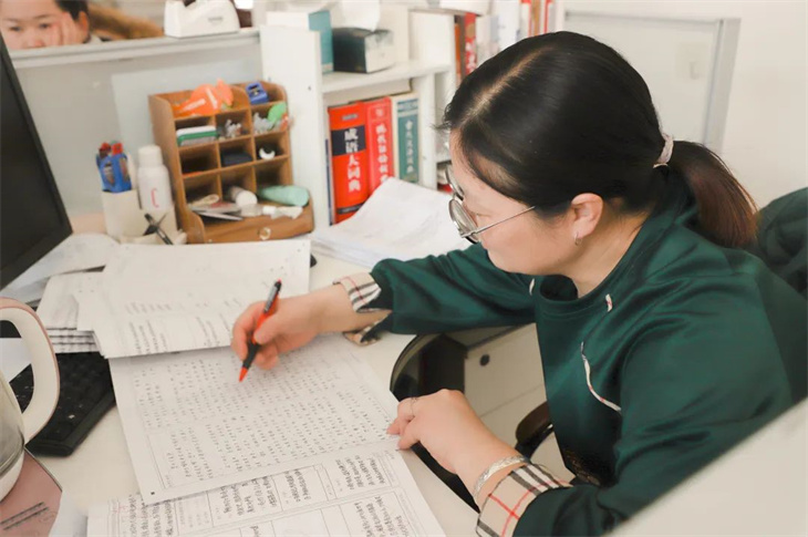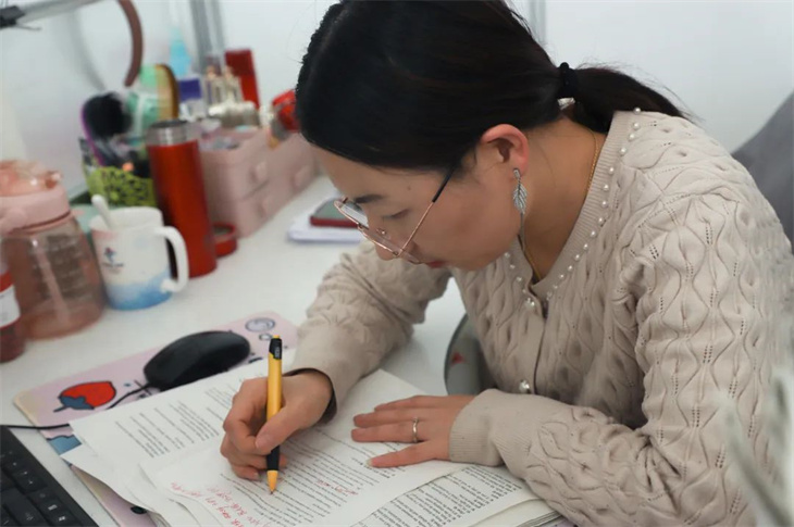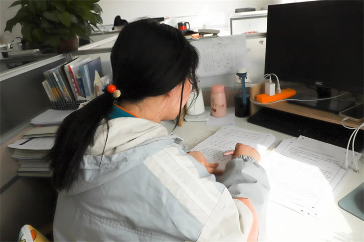 办公室里,老师们在认真备课,专注认真的背影让人深深动容;备课本上的批注,一个线段,一个字母,都倾注了老师们对学生们肉眼可见的关怀与爱。