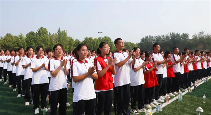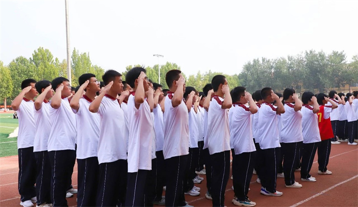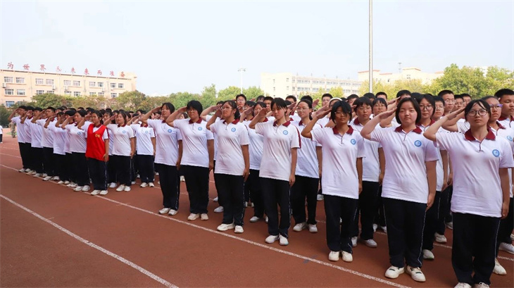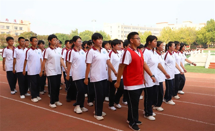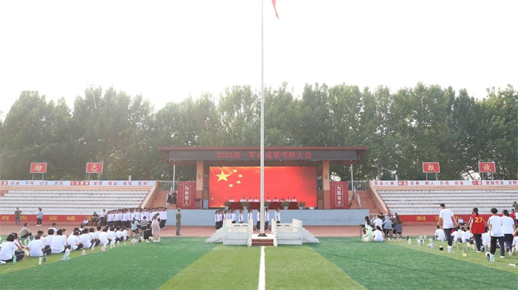 骄阳之下,青春气贯长虹。9月7日下午,我校2023级新生军训成果考核大会在操场举行,给为期7天的军训画上了一个圆满的句号。副校长赵晓艳、金耀辉、高智勇,安全处主任魏红胜,高一年级主任孙月梅、闫鹏,级部主任郭万发、袁佳瑞、宁长亮、徐亚男、王鹏出席了大会,高一年级全体师生及教官参加了大会。大会由孙月梅主任主持。