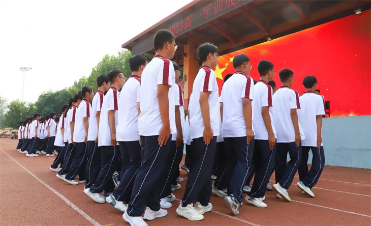 他们抬头挺胸、步伐沉稳、气势如虹,在教官铿锵有力的口令声中,完美完成每一个动作,整齐划一的动作和飒爽干练的英姿充分彰显了宏达学子追求卓越的精神和自强不息的豪情。