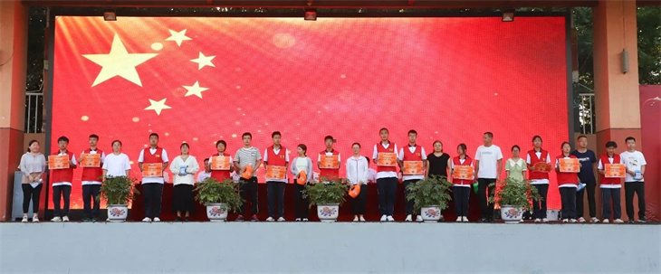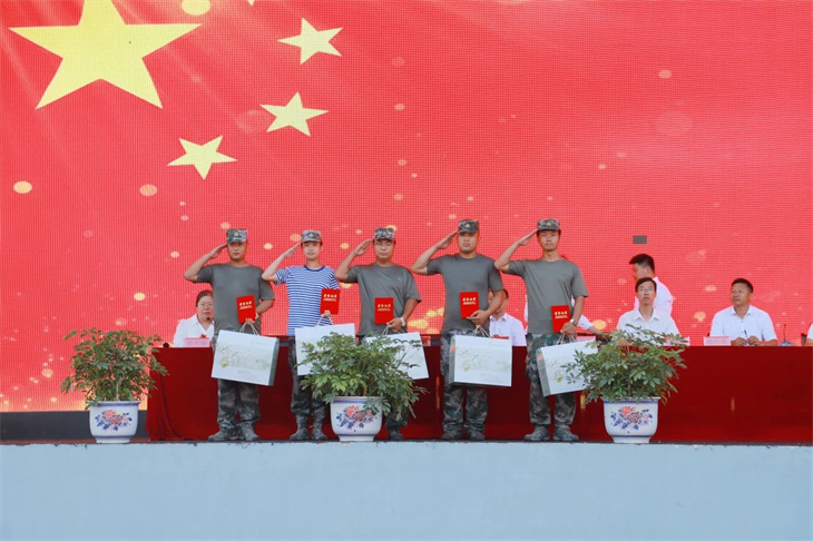 激动人心的颁奖环节,我校领导分别为军训宿舍内务整理优秀班集体、军训成果考核优秀班集体、军训优秀教官颁发奖品奖状。