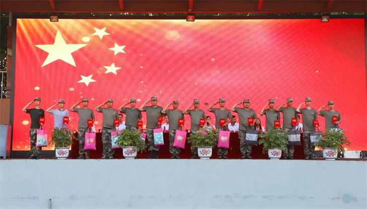 随着军训总教官一声令下,全体学生在教官的带领下有序入场,学生动如出海蛟龙,静若严冬寒松,以挺拔的身姿、饱满的热情、坚强的意志、无畏的精神向我们展示了一周的训练成果。