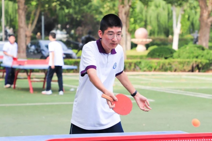 乒乓球台,精彩的对决引来围观的同学阵阵喝彩