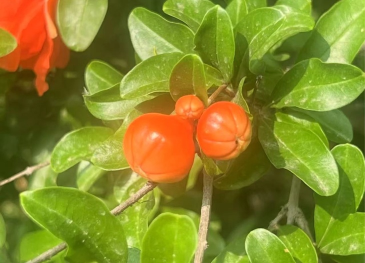 漫步校园小径,万物生息如乐章般清晰:青涩石榴含蓄蕴藏力量,李果沉甸甸压弯了低低的枝梢,仿佛自然以丰盈默默祝福学子似枝丫般不辜负光阴重量;满园月季肆意绽放热情,热烈如火灼灼喷发;池中锦鲤摆尾悠游,漾开涟漪,宛若寄寓前途顺遂通达。