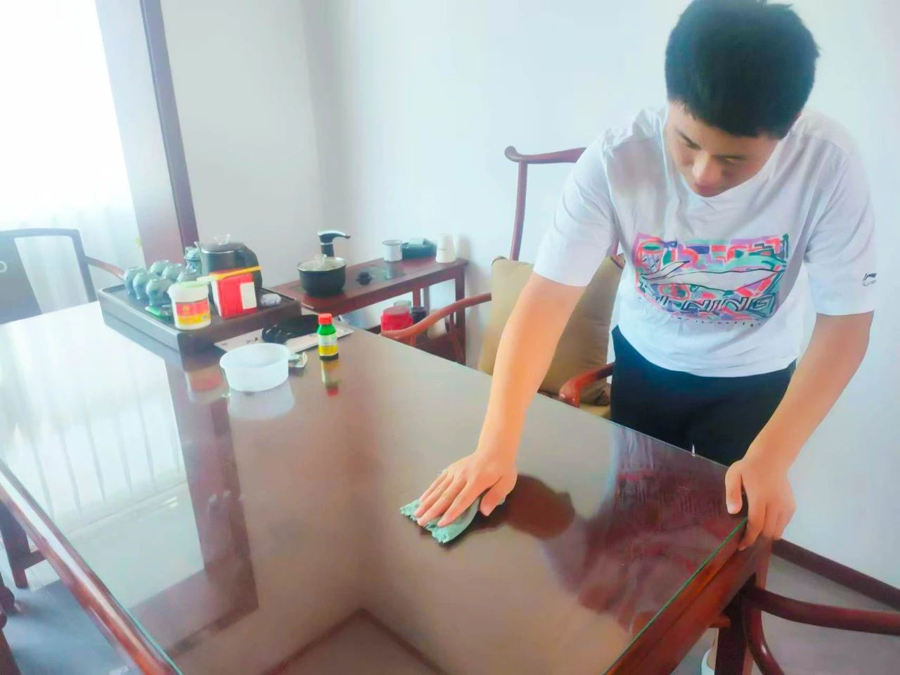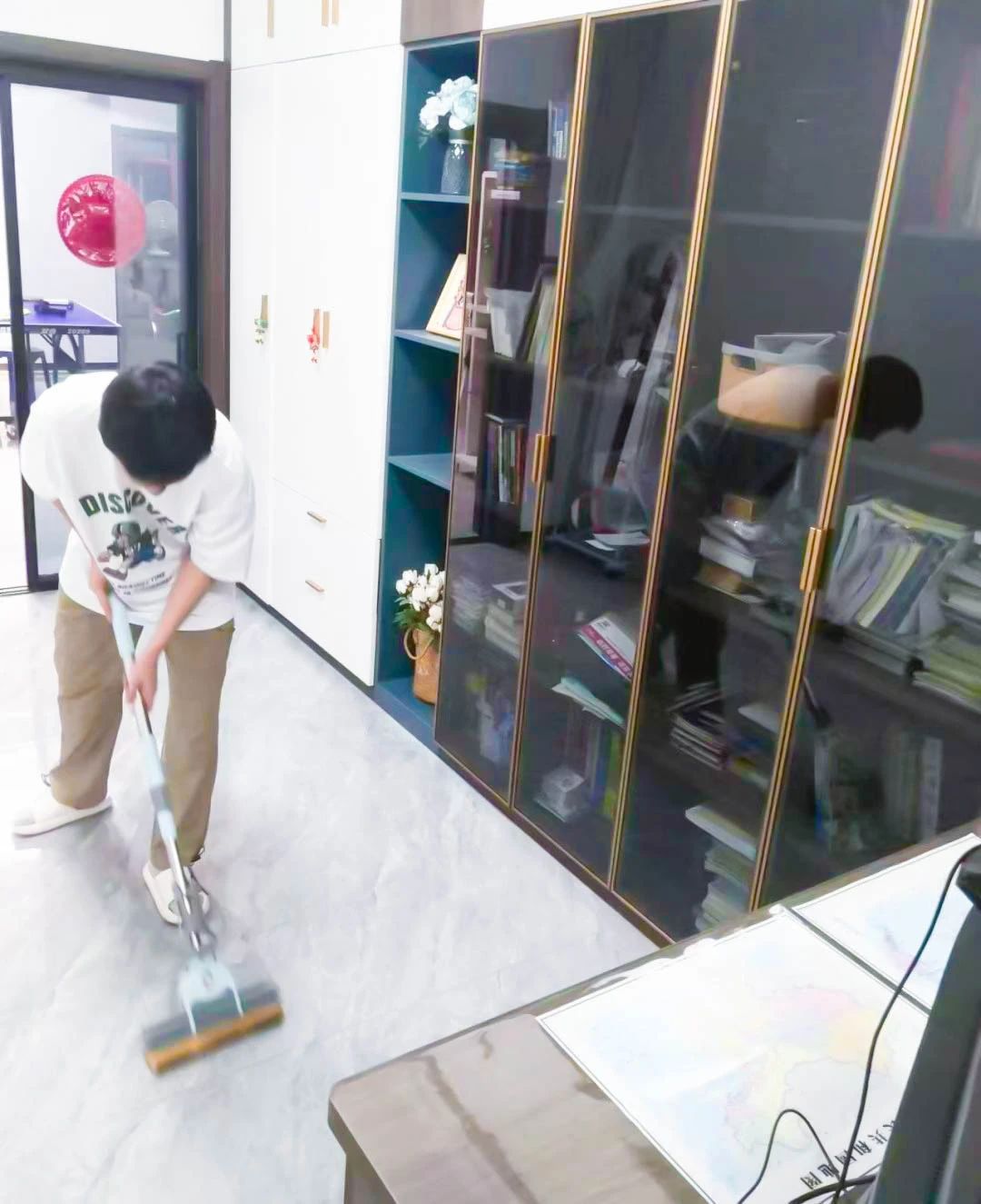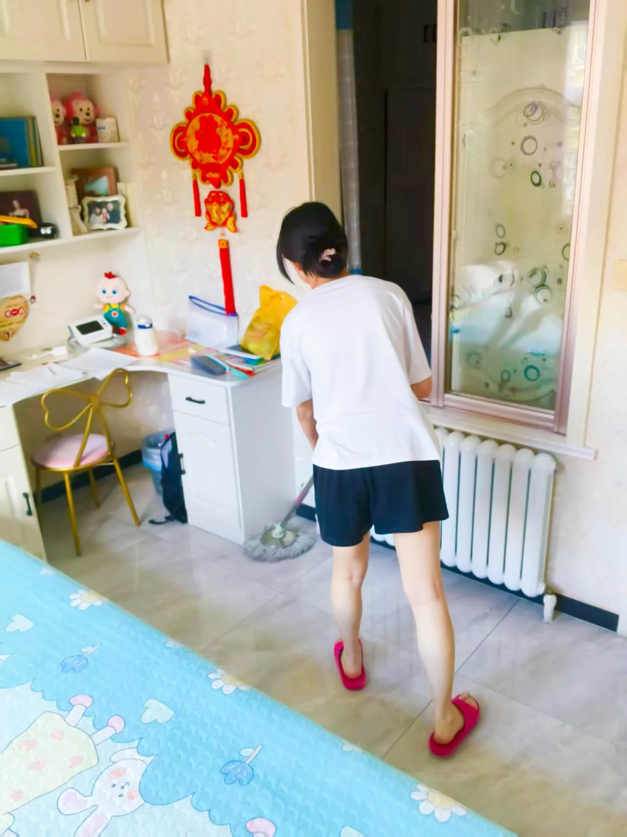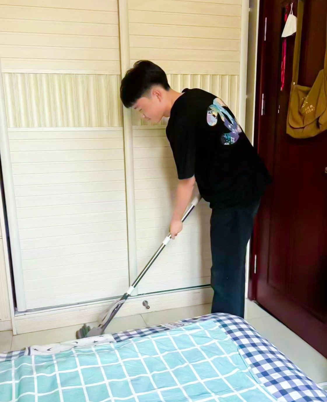 整洁的环境带来舒适的心情。瞧!同学们拿起扫帚、拖把,认真地清扫着家里的角角落落,整理床铺,清洗衣物,看着家里在自己的努力下变得窗明几净,满满的成就感不禁油然而生!