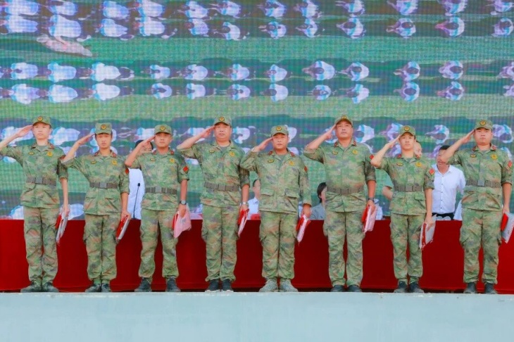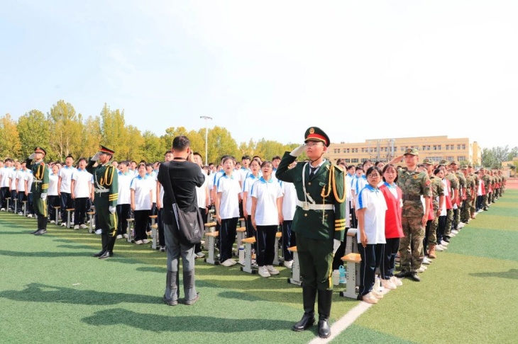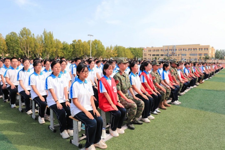 在2025级高一新生顺利完成为期一周的军事训练后,一场展现青春风采、检验训练成果的军事汇演正式拉开帷幕!9月7日下午,2025年高一新生军训成果考核大会在操场隆重举行。全体高一新生以最饱满的热情、最昂扬的姿态,交出了一份充满青春力量的军训答卷。