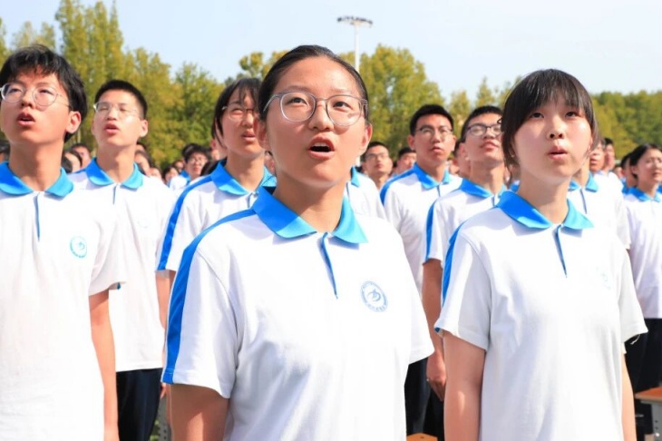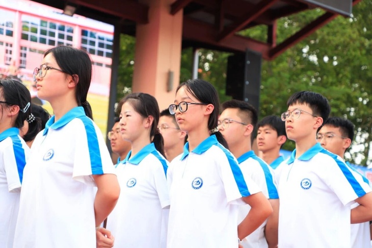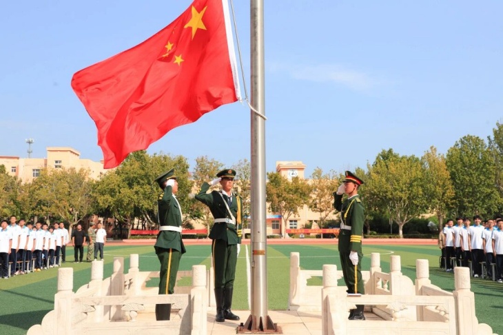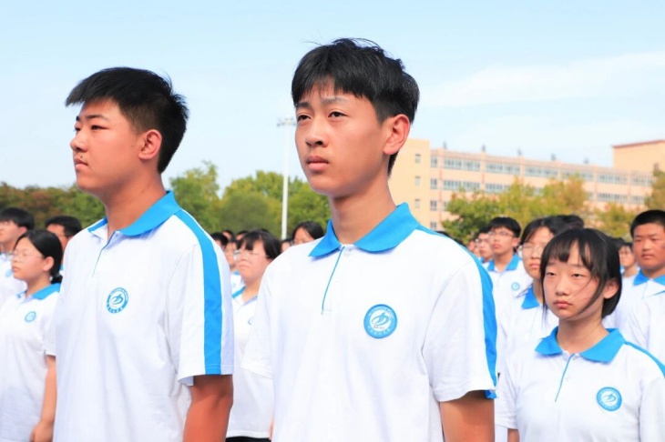 庄严的升旗仪式为汇演拉开帷幕。国旗护卫队迈着铿锵有力的步伐,护卫五星红旗走向升降台,在嘹亮的国歌声中,鲜艳的国旗冉冉升起,全体师生庄严肃立、目光如炬,这一刻,青春与家国情怀同频共振。