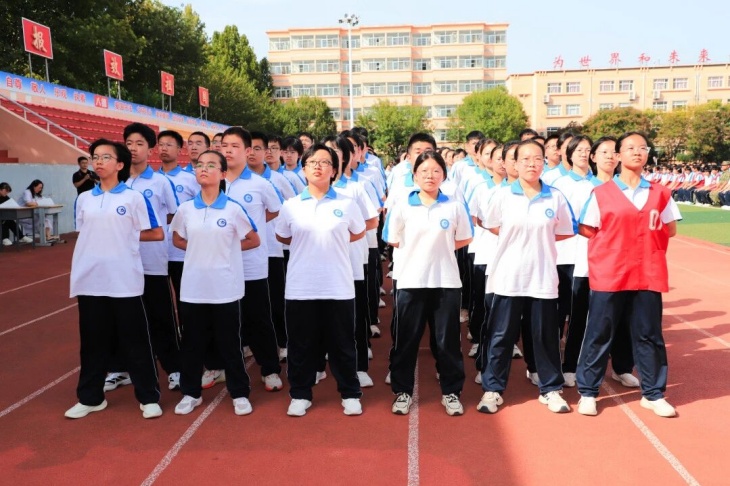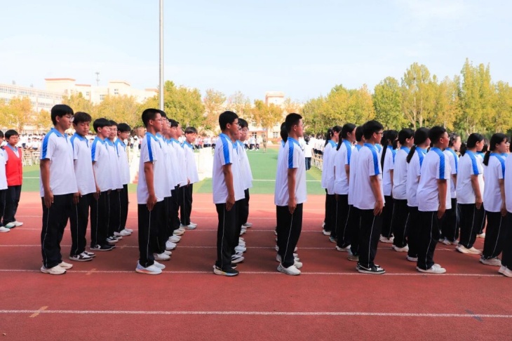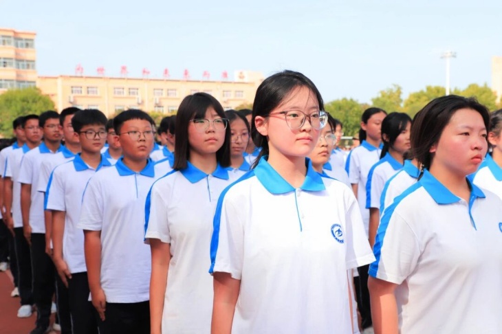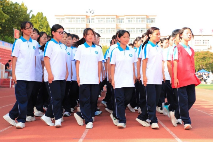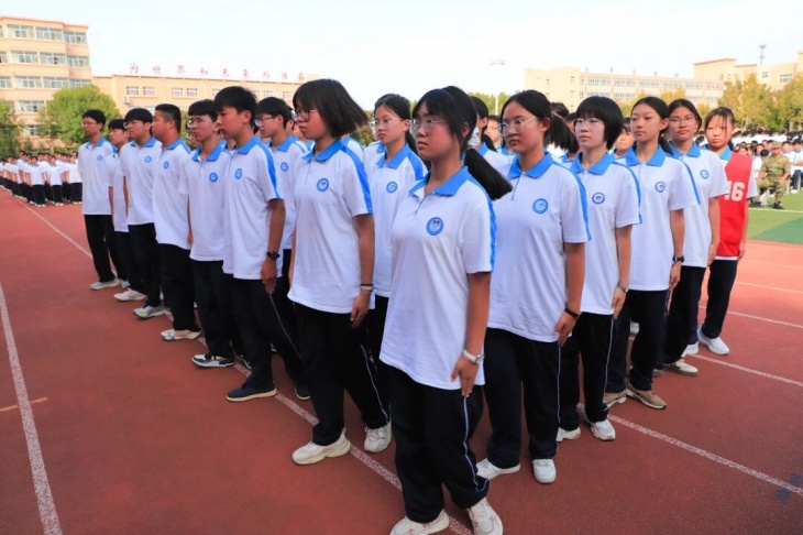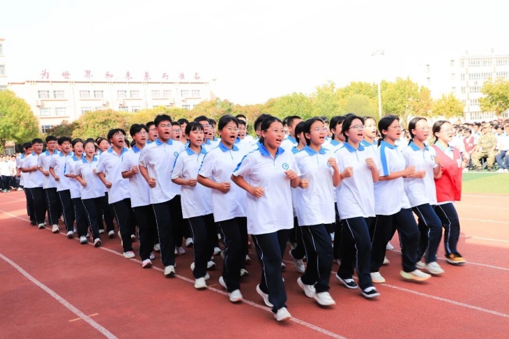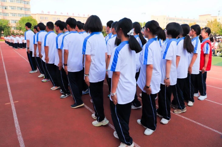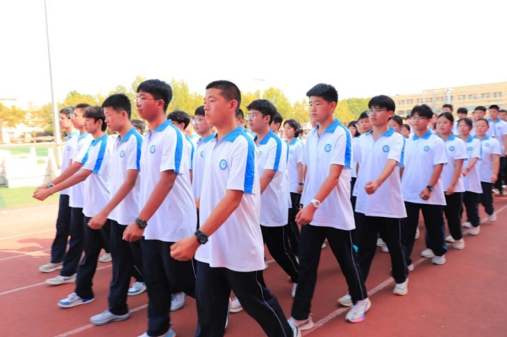 队伍整齐划一;听!口号响彻云霄。随着指令的下达,各高一队伍依次登场。整齐的步伐踏地有声,标准的军姿挺拔如松。从队列变换到训练展示,同学们动作协调划一,眼神中满是自信与坚毅。他们褪去了初入校园的懵懂与青涩,彰显了新一代学子奋发蓬勃的精神与朝气,赢得了现场师生的阵阵掌声。