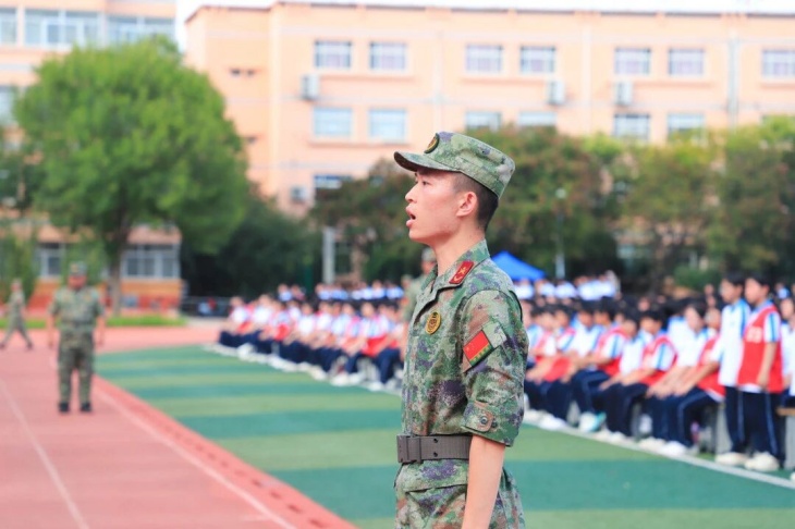 汇演的尾声,副校长金耀辉发表讲话。他首先向圆满完成军训任务的新高一学子表示祝贺,向辛勤付出的教官、班主任及工作人员致以感谢。“军训是高中生活的第一课,也是一堂生动的‘成长课’。” 他在讲话中提到,希望同学们能将军训中养成的优良作风、锤炼的坚强意志,转化为未来求知路上的动力,学会坚持、懂得团结、勇于担当,在宏达这片沃土上,以青春之我、奋斗之我,书写属于自己的精彩篇章。