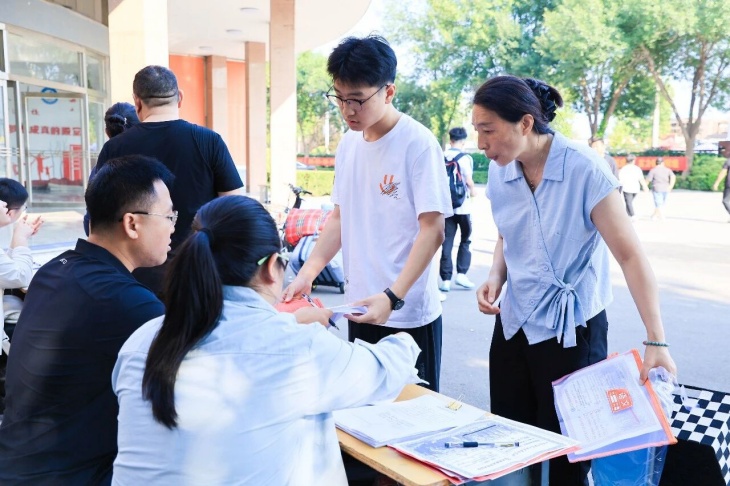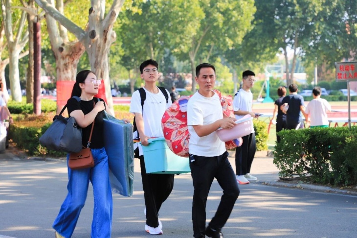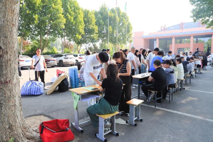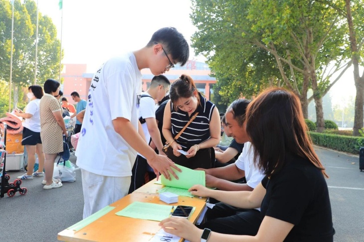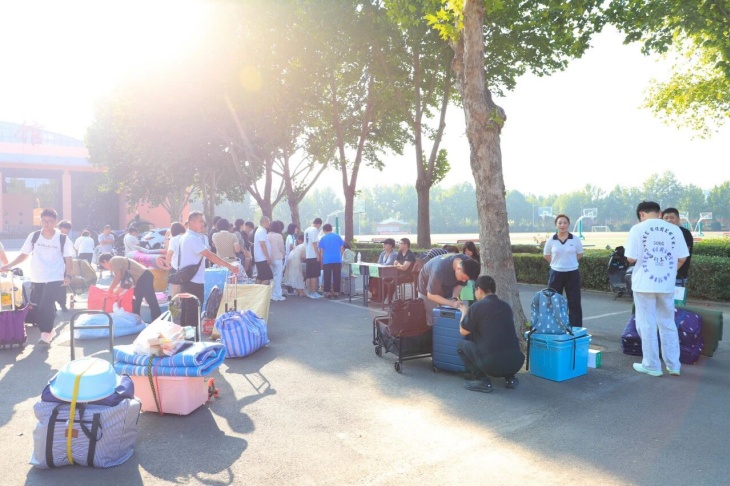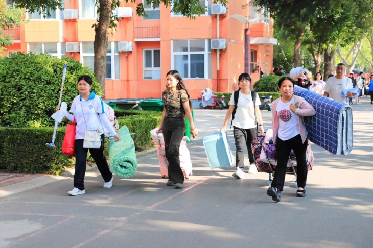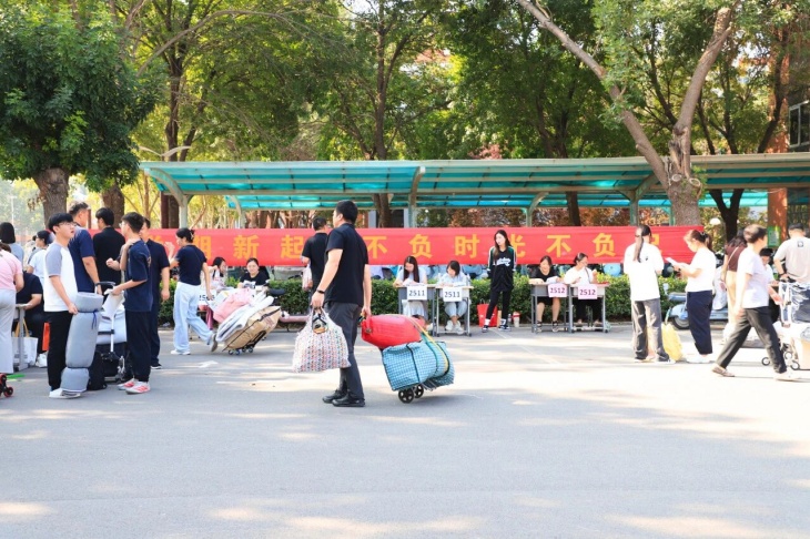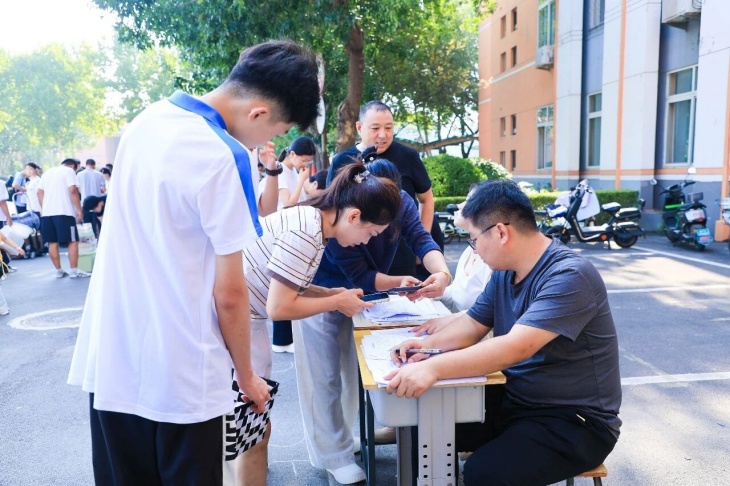 报到处在教学楼前整齐布置,各班班主任与科任老师翘首以盼,期待着新生力量的加入。同学们依次排队签到,领取校园卡、床单被罩等生活用品。老师们耐心讲解着入学事项,细致周到的服务让报到流程高效而有序地开展。