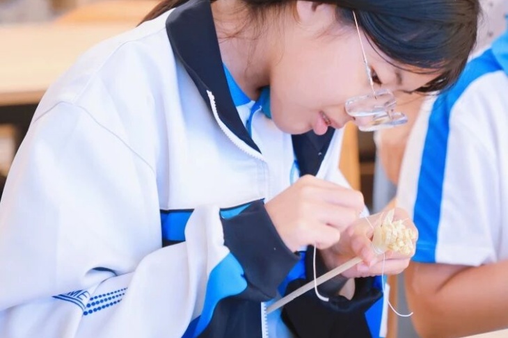 高一学生正处于动作技能发展的关键期,金老师的"手把手",既保护了他们尝试的热情,又通过精准指导缩短了"试错成本"。当学生们从手忙脚乱到逐渐熟练,他们真正理解的,是劳动中"专注"与"耐心"的价值——这些品质,比最终的作品更珍贵。