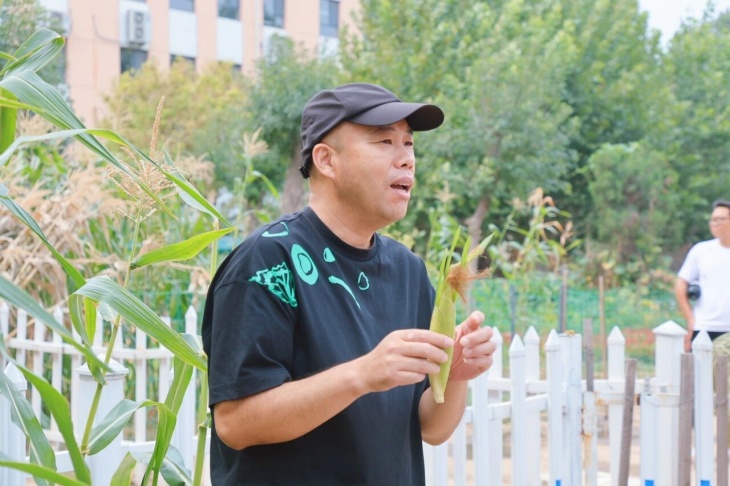敬立江老师站在田垄边,没有急着让大家动手。"先认认这位'老熟人'。"他举着玉米棒,从外形特点讲到生长价值,从药用价值说到营养价值。这些曾在课本上略过的知识点,此刻与眼前的玉米叶、泥土香交织在一起,突然有了具体画面。原来劳动从不是蛮干。当我们知道玉米要在哪个时期采摘才最甜,怎样才能快速采摘。劳动是知识的源泉,让我们在付出劳动前先理解土地的语言,在行动时多一分敬畏与智慧。