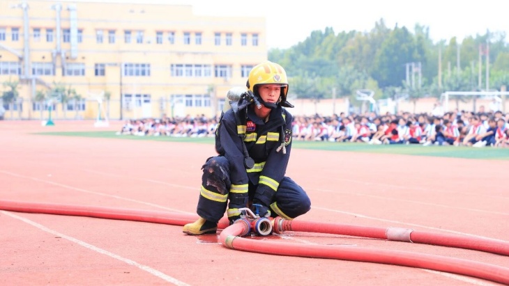 活动最后,消防员也为同学们带了一场精彩的灭火行动演示,让同学们更直观地了解火灾扑救现场中消防员的迅捷行动处理,他们无畏前行的风采给同学们带来深深的震撼,更加带动了同学们学习消防安全知识的热情。