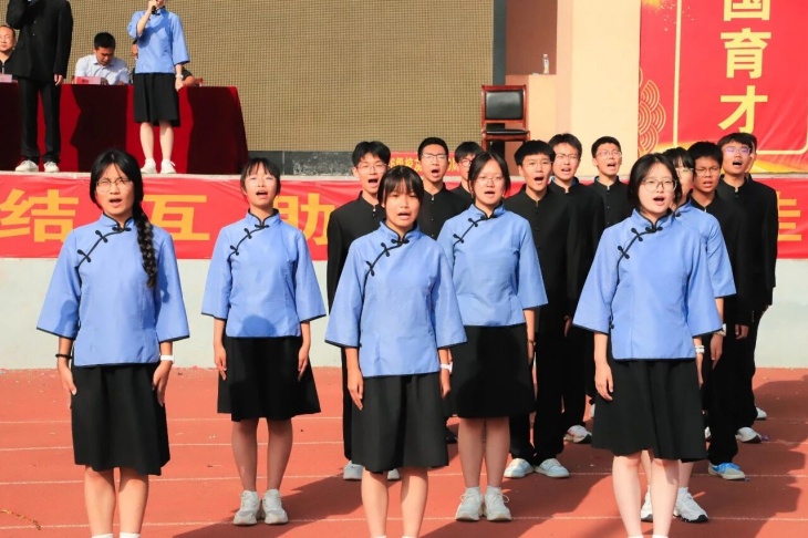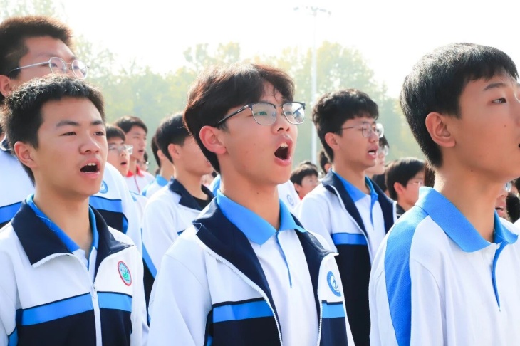 “少年强则国强,少年独立则国独立”,一场题为《少年中国说》的集体朗诵将现场的气氛再推向深情与昂扬的高潮。同学们用铿锵之声诠释着运动赛场上“永不放弃、追求卓越”的拼搏精神与少年一代“矢志报国、砥砺前行”的理想信念的共鸣,愿以吾辈之青春,捍卫盛世之中华!这场集体朗诵引得台下师生无不动容,掌声经久不息。