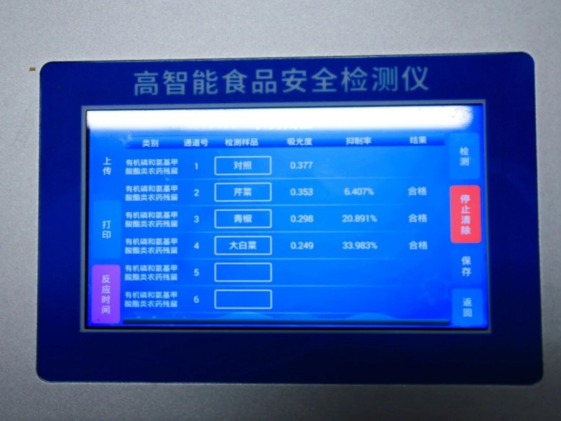 新鲜的原料迅速抽样进入快检室,在检测人员的规范操作下,食品安全检测仪在15分钟内完成分析,检测品类、批次、结果等关键信息被准确记录并大屏实时公布,今日的鲜美,又完成了一道温柔的“体检”。