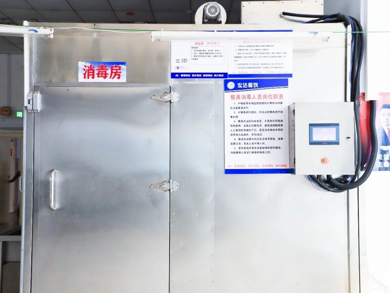 餐后的清洁,细致到每一个角落。洗筷机、洗碗机及时地清洗餐具,与高温消毒室共同进行双重消毒措施,保持着餐具的干净卫生。非操作时间,一排排的紫外线消毒灯自动开启,在餐厅的所有区域寂静工作。清洁消毒,又完成一次负责任的循环。
