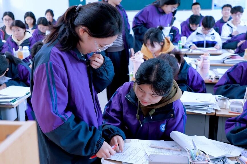 课间十分钟,不只是老师的“答疑专场”,更是同学间的“智慧碰撞场”。走廊一角、教室后排,常常能看到三五成群的同学围在一起,互相提问、讲解思路、核对答案。“你这道题怎么做的?”“我来给你讲讲我的方法!”没有孤军奋战,只有并肩同行。在这段冲刺路上,他们既是竞争对手,更是彼此最坚实的战友。
