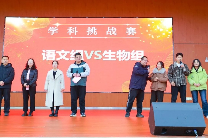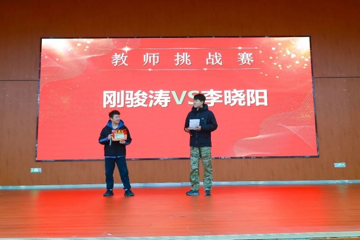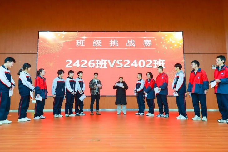 榜样发声表彰与分享之余,大会现场同步开启月考系列挑战赛,为下一阶段的学习工作擂响奋进战鼓。依次开展月考班级挑战赛、教师挑战赛、学科组挑战赛,挑战方代表2426班、刚骏涛老师、语文组,应战方代表2402班、李晓阳老师、生物组先后登台,以昂扬的姿态立下挑战目标,展现出宏达人敢闯敢拼、勇攀高峰的精神风貌,让拼搏的种子在校园落地生根,让比学赶超的氛围愈发浓厚。