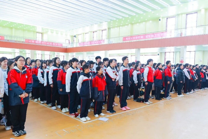 升旗仪式大会在庄严的国歌声中拉开帷幕,全体师生肃立齐唱,铿锵的歌声里饱含着对学业的热忱、对教育的坚守,也凝聚着同心同向、携手奋进的强大力量,为本次表彰大会奠定了庄重而热烈的基调。新程/启梦/绘新篇