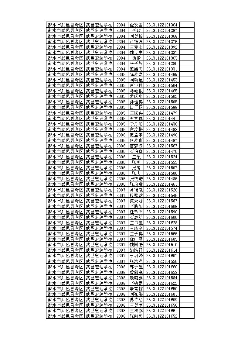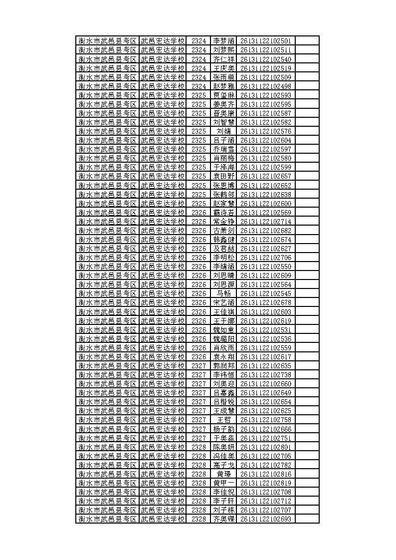 武邑宏达学校地方专项公示名单